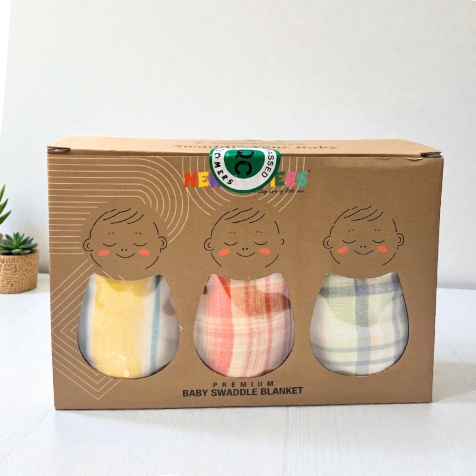 Cotton Muslin Baby Swaddle and Wrapper for Infants – Pack of 3