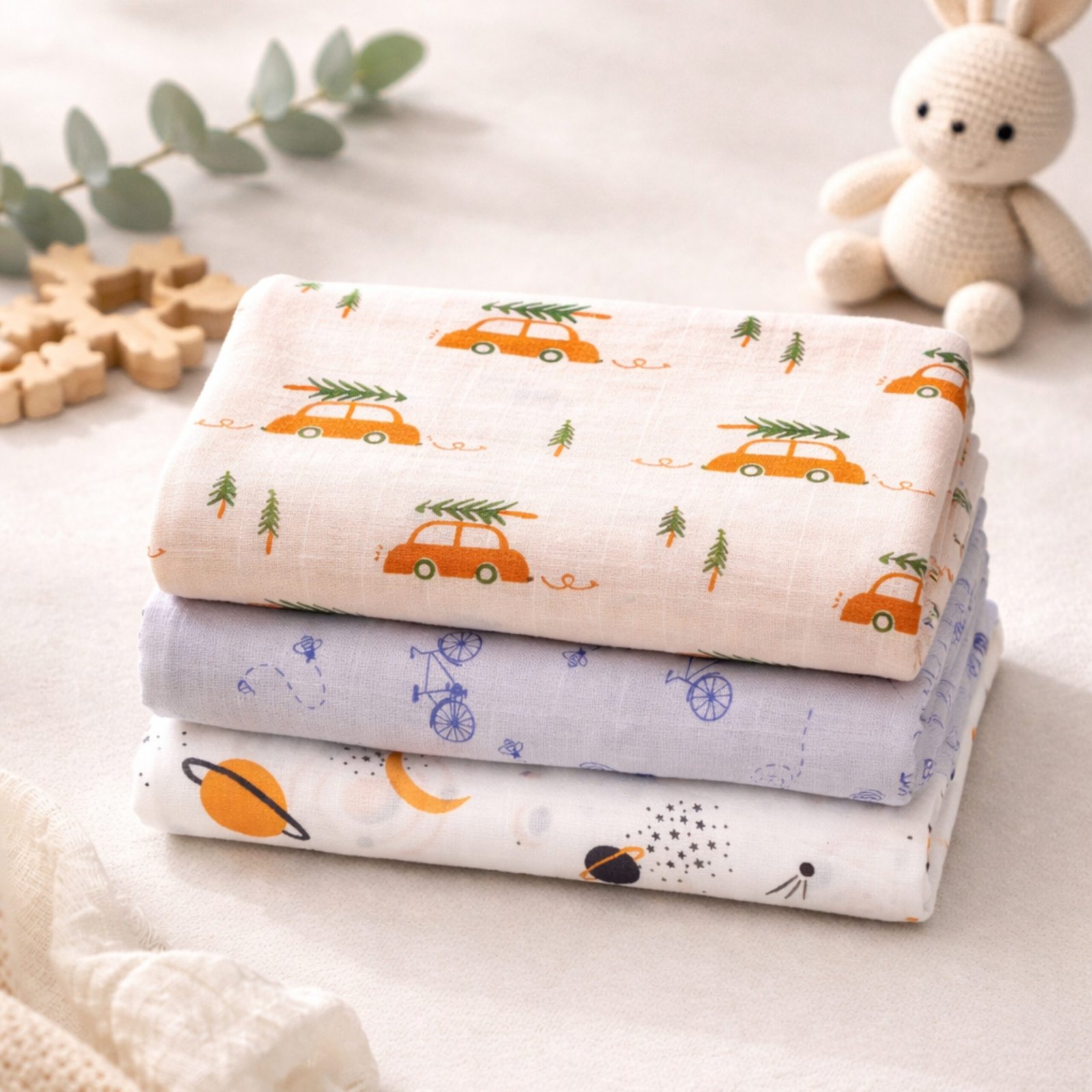 Cotton Muslin Baby Swaddle for New Born Baby – Pack of 3